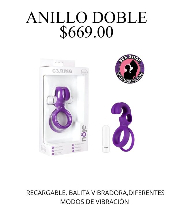 ANILLO VIBRADOR CON DOBLE ARO PARA PENE Y TESTICULOS,CON ESTIMULACION DE CLITORIS, MATERIAL DE CILICON, BALITA VIBRADORA RECARGABLE, CON DIFERENTES MODOS DE VIBRACION