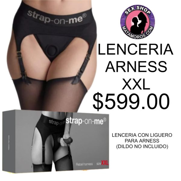 LENCERIA CON LIGUERO Y HUECO PARA ARNES XXL (DILDO NO INCLUIDO)