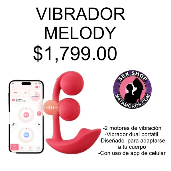 VIBRADOR MELODY, DOS MOTORES ,DISEÑADO PARA ADAPTARSE A TU CUERPO , APP DE CELULAR